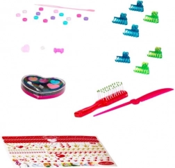 Glavnik, krtača, kroglice, sponke, trakovi, nalepke, paleta "make-upa"
