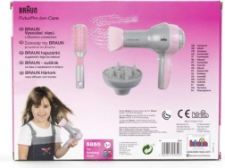 Predstavljamo otroški sušilnik za lase Braun z difuzorjem in krtačo, idealen za male frizerke. Ta izdelek je izdelan pod licenco podjetja Braun, kar mu daje realističen videz, podoben pravemu aparatu. Izdelek je povsem varen, sušilnik samo piha zrak, ne da bi se segreval, kar zagotavlja varnost za otroške roke.