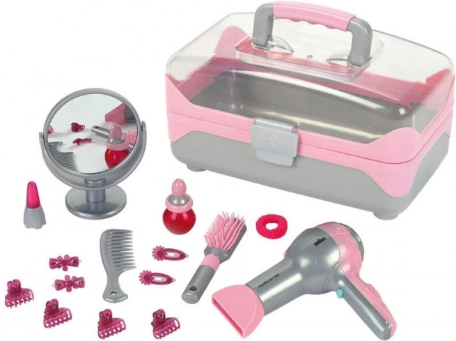 Ta zbirka frizerskih potrebščin podjetja Klein je namenjena zlasti dekletom. Ponuja široko paleto izdelkov, ki se odlično dopolnjujejo. Otroci lahko skozi igro posnemajo situacije iz sveta odraslih. Stilizacijske naprave, kot sta sušilec za lase ali likalnik, posnemajo delovanje pravih naprav in so izdelane z izjemno skrbjo, da dekleta lahko ustvarjajo pričeske ne le za svoje punčke, temveč tudi za mamice ali prijateljice. Sušilec pihlja zrak, vendar se ne segreva. Glavnik, krtača in sponke imajo zaobljene konice, da je igra z njimi varna.
