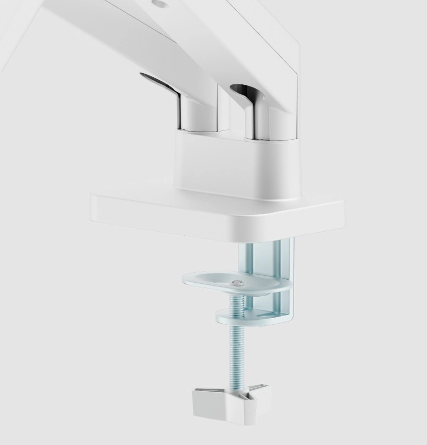 Robustna konstrukcija z nosilnostjo do 10 kg na vsako roko in močan namizni vijačni objem zagotavljata stabilnost brez vrtanja. Odstranljiva VESA plošča skrajša čas montaže na minimum, medtem ko vgrajeno vodenje kablov ohranja delovno mesto čisto in pregledno.