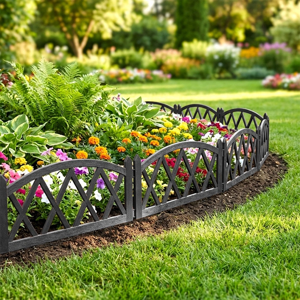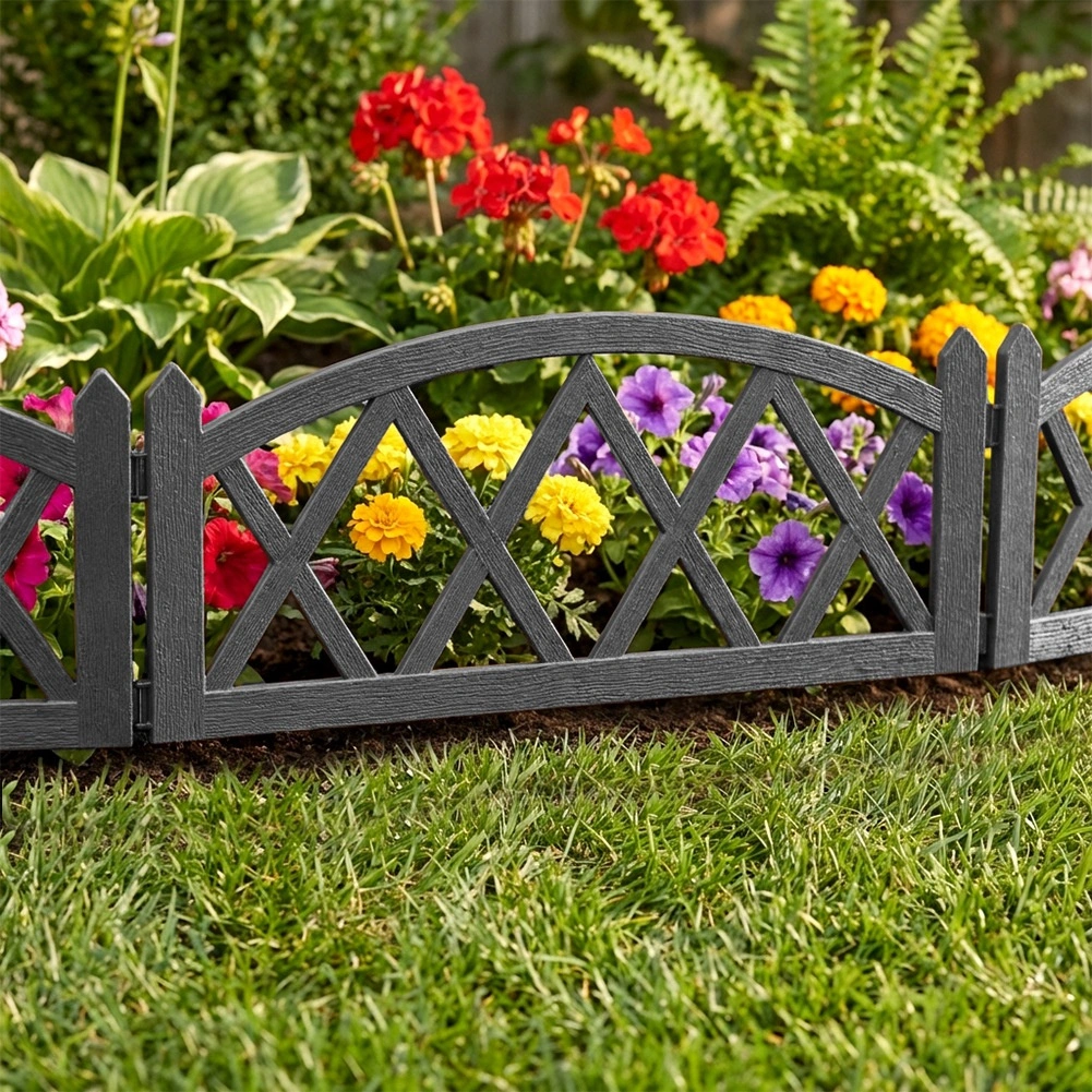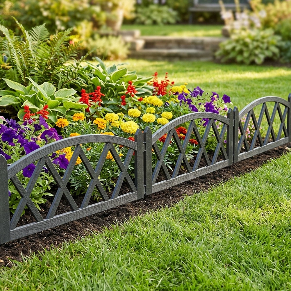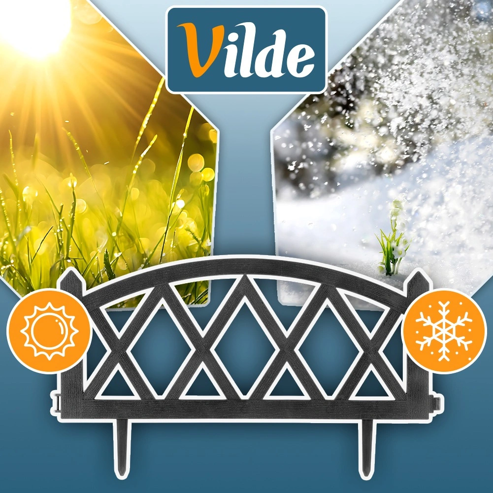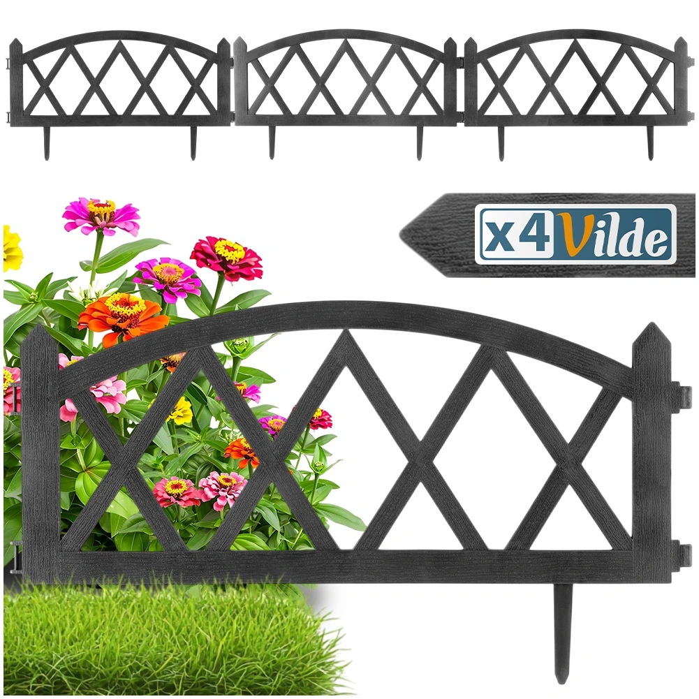 Ustvarite pregleden in estetski prehod med trato in cvetličnimi gredicami. Set 4 sivih plotov nudi enostavno namestitev zahvaljujoč dvema integriranima količkoma na vsakem panelu ter zagotavlja stabilno pritrditev v tla. Po poravnavi v ravni liniji dobite skupno dolžino približno 228 cm, idealno za obrobo gredic in stezic.