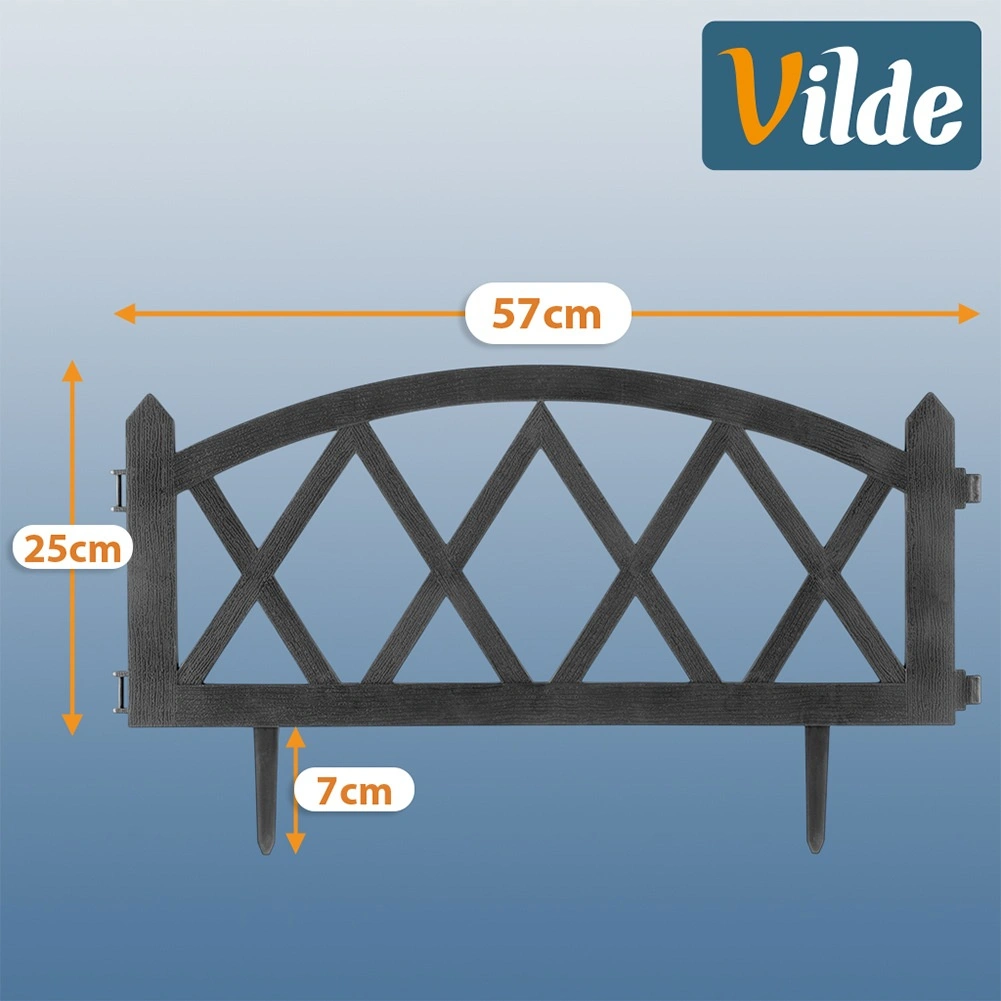 Plotovi so izdelani iz kakovostne, nezahtevne plastike z teksturo, ki spominja na les, ki je odporna proti zmrzali, UV-žarkom in dežju. Stranski spojniki omogočajo povezovanje panelov v želeno obliko in dolžino, zato zlahka prilagodite robove katerikoli vrtni kompoziciji.