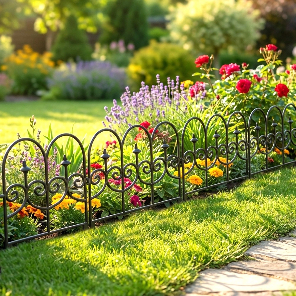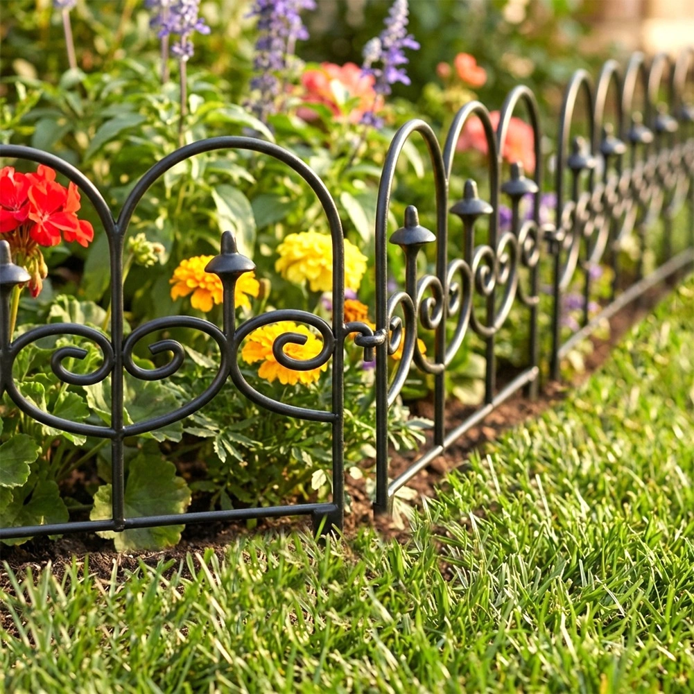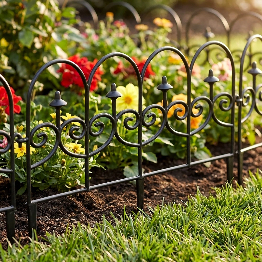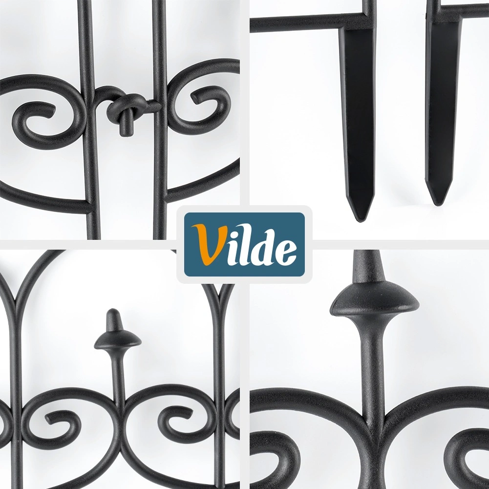 Set štirih dekorativnih vrtnih ograj v črni barvi omogoča hitro in urejeno ločevanje gredic, trate in poti. Vsak panel meri 59,5 cm v dolžino in 24 cm v višino (34 cm vključno s sidri), zato v ravni liniji ustvarite skupno dolžino 238 cm. Ograje so iz trpežnega materiala, enostavno se namestijo s pomočjo treh sidrnih konic in jih lahko med seboj poljubno povežete v želeno obliko in dolžino. Zahvaljujoč odpornosti proti zmrzali, UV-sevanju in dežju so idealne za celoletno uporabo ter zagotavljajo čiste linije gredic in zaščito rastlin.