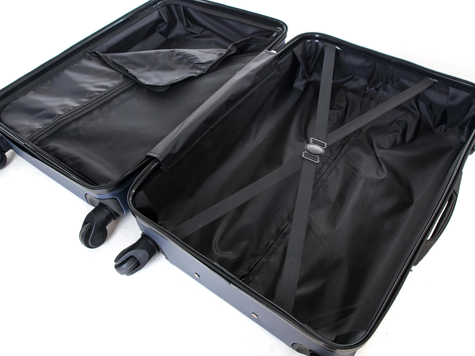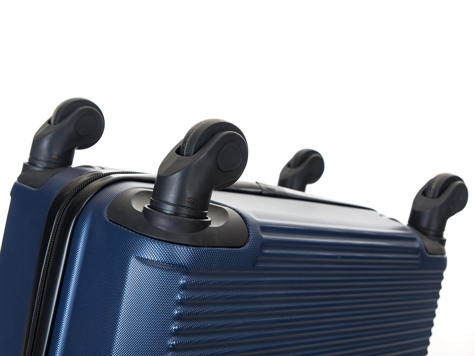 Ta velik trdi kovček (velikost L) v elegantni modri barvi je izdelan iz trpežne plastike ABS, ki odlično ščiti vsebino pred udarci in obrabo. Zahvaljujoč štirim kolescem 360° in izvlečnemu teleskopskemu ročaju z zaskokom se s kovčkom gibate lahkotno in tekoče tako na letališču kot v mestu.