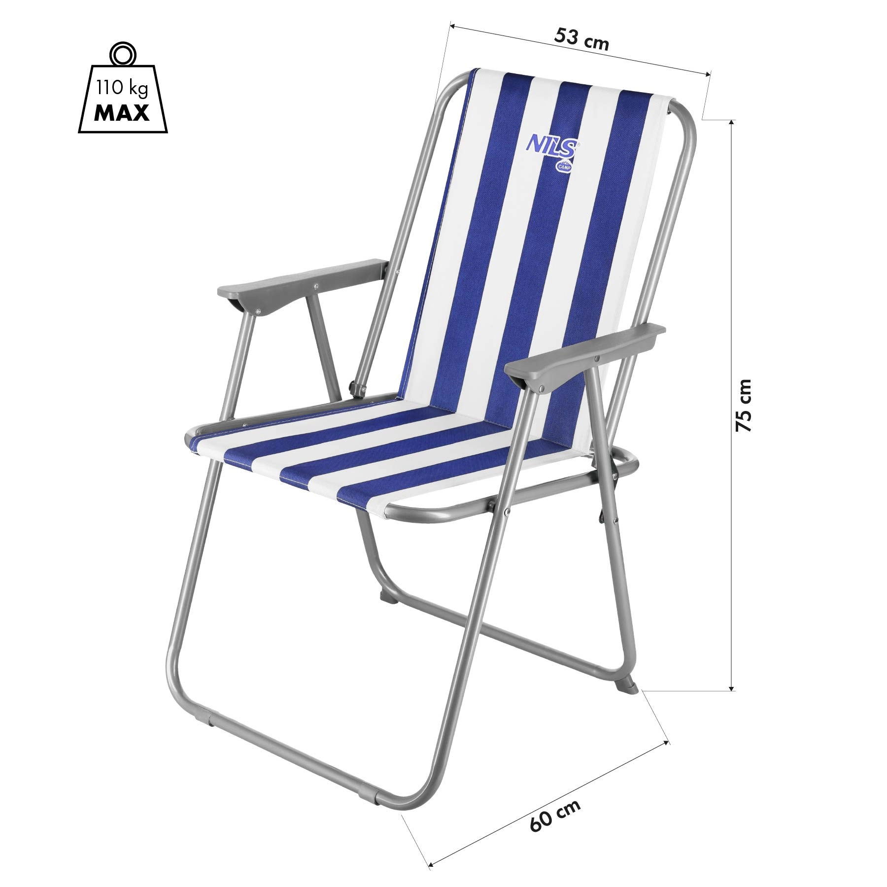 Lahkoten in trpežen zložljiv stol NILS Camp je idealen za plažo, kampiranje in vrt. Ponuja čvrsto jekleno konstrukcijo, udobno sedenje in preprost transport zaradi kompaktnih mer po zlaganju. Največja nosilnost 110 kg in trpežen poliester 600D Oxford zagotavljata dolgo življenjsko dobo in zanesljivo udobje na prostem ali na balkonu.