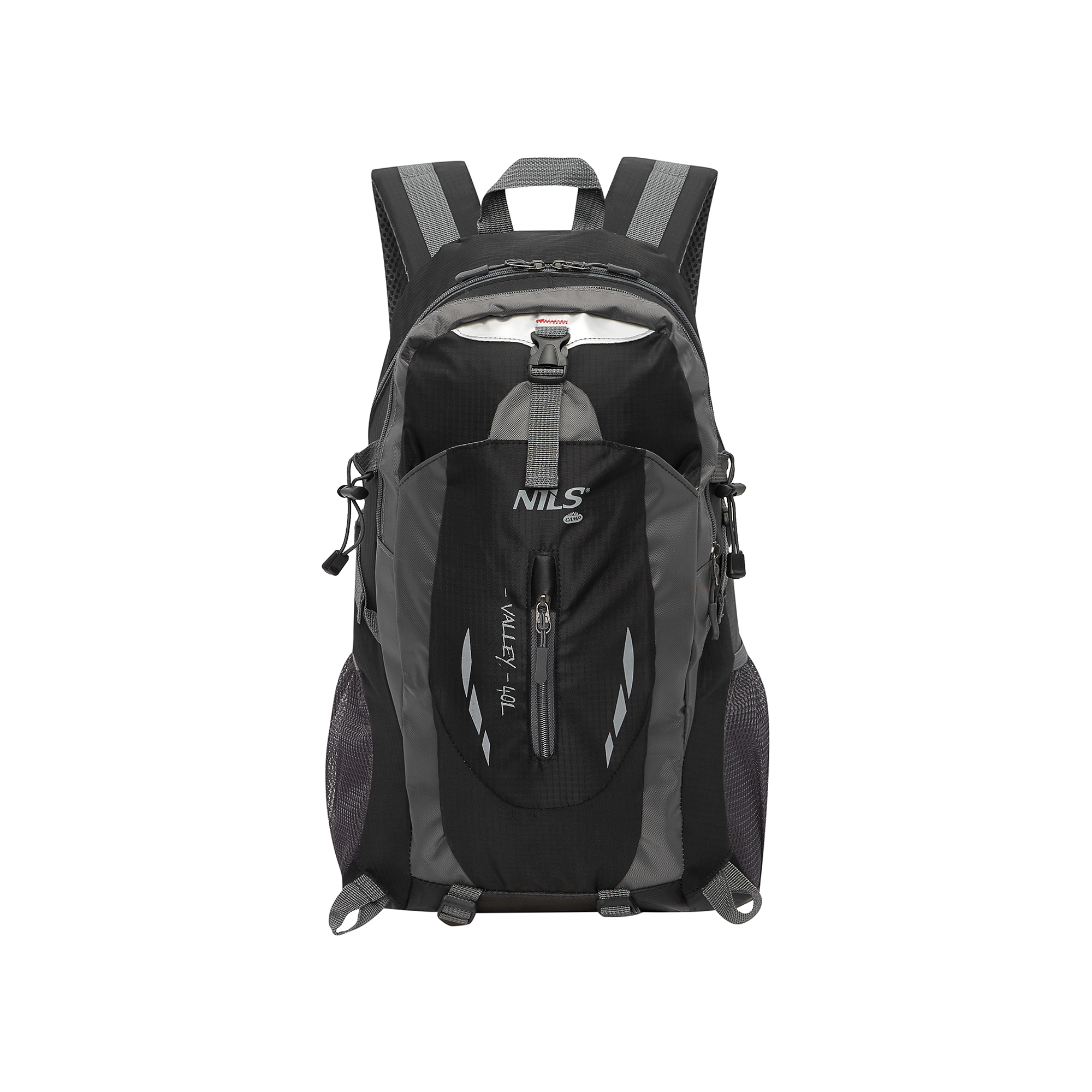 Nahrbtnik NILS Camp Valley 40 l združuje lahko zasnovo z vzdržljivim materialom in pametno razporeditvijo. Glavni predal s pregrado, trije žepi na zadrgo in dva stranska mrežasta žepa poskrbijo, da je oprema pregledno in varno shranjena. Zahvaljujoč odpornosti proti škropljenju z vodo bo vsebina zaščitena tudi v nestanovitnem vremenu.
