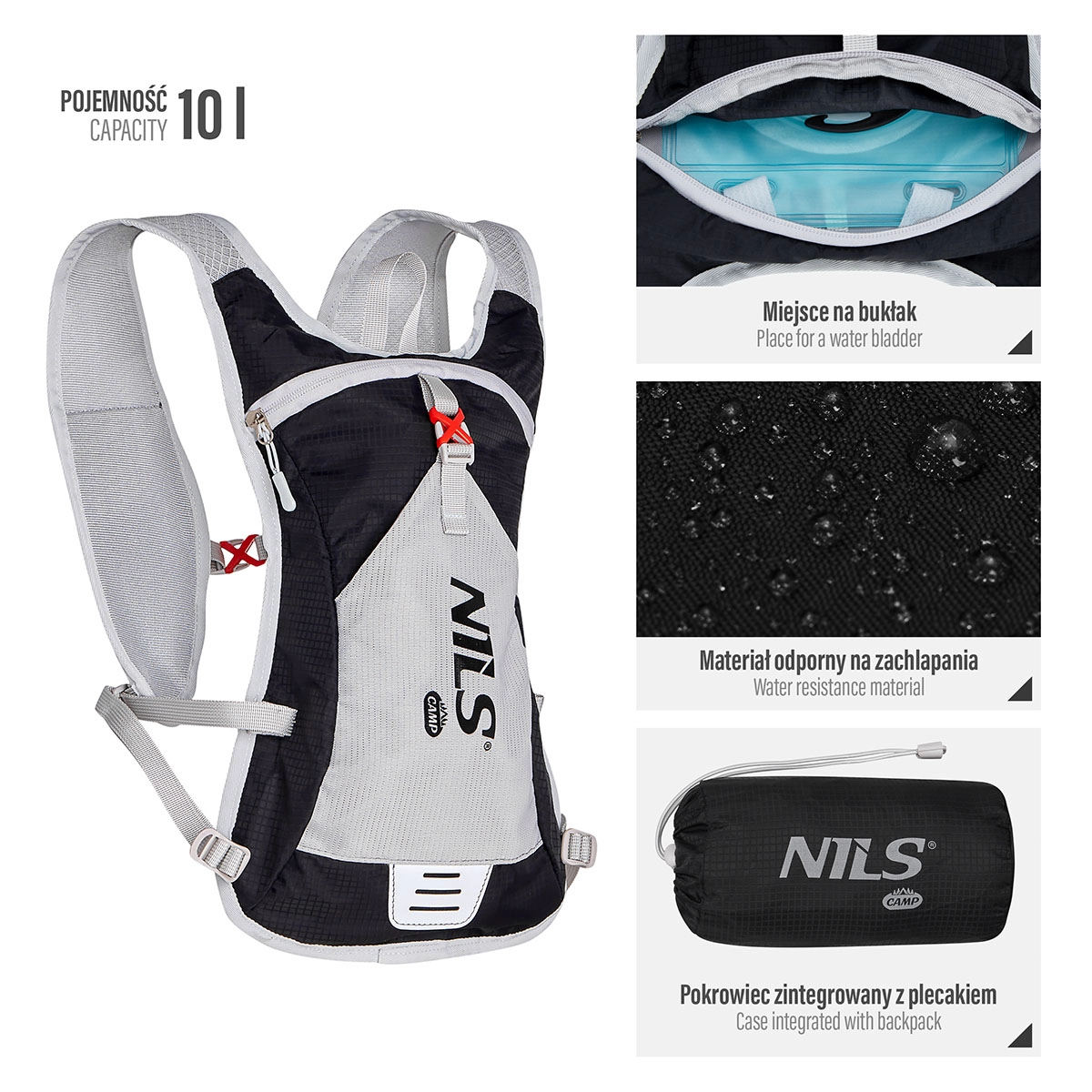 Lahek in kompakten nahrbtnik NILS Camp Tripper s prostornino 10 l je idealen za tek, kolo in kratke izlete. Ponuja pripravo za hidrovak, zračne naramnice, odsevne elemente in praktičen ovoj za zlaganje v majhen paket. Zahvaljujoč trpežnemu najlonu je lahek, odporen proti obrabi in delno vodoodporen.