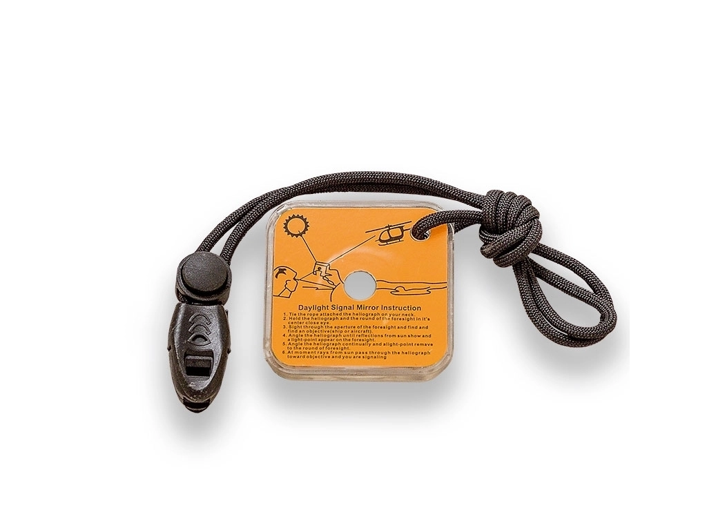 Kakovostna usnjena nožnica ščiti nož med prenašanjem in omogoča udobno nošenje na pasu. Praktično signalno ogledalce povečuje varnost pri gibanju v naravi in lahko služi tudi za nujno signalizacijo.
