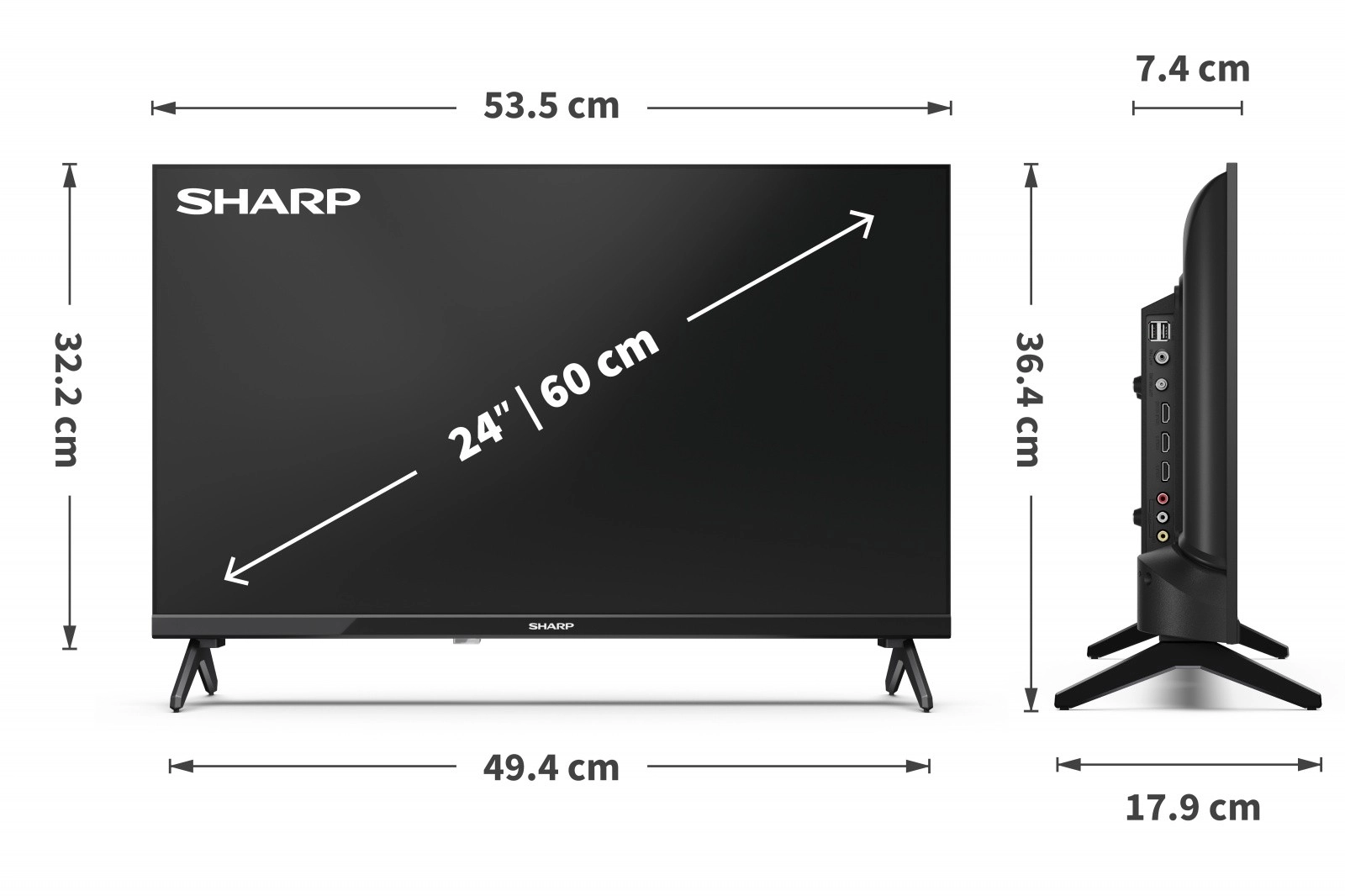 Uživajte v priljubljenih oddajah na 24-palčnem LED televizorju SHARP z visoko svetilnostjo, kontrastom in naravnimi barvami. Zahvaljujoč kompaktnim meram se odlično poda v manjše prostore, hkrati pa ohranja sodoben, tanek videz in stabilno stojalo.