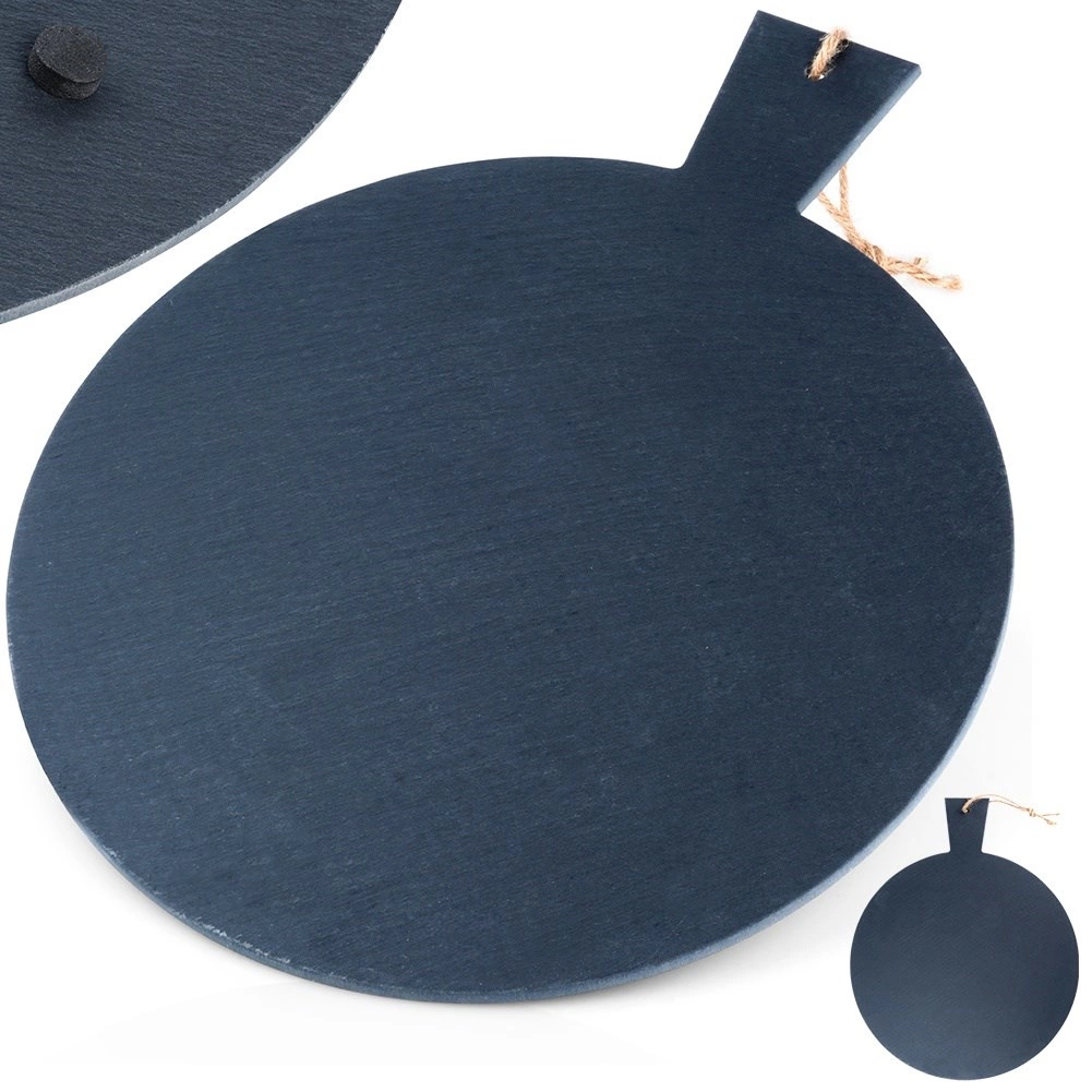 Izboljšajte predstavitev svojih jedi z okroglo skrilasto desko dimenzij 43 × 34 cm. Naravni kamen v elegantni črni barvi z rahlo strukturirano površino in brušenimi robovi deluje brezčasno in se odlično poda k vsakemu pogrinjku.