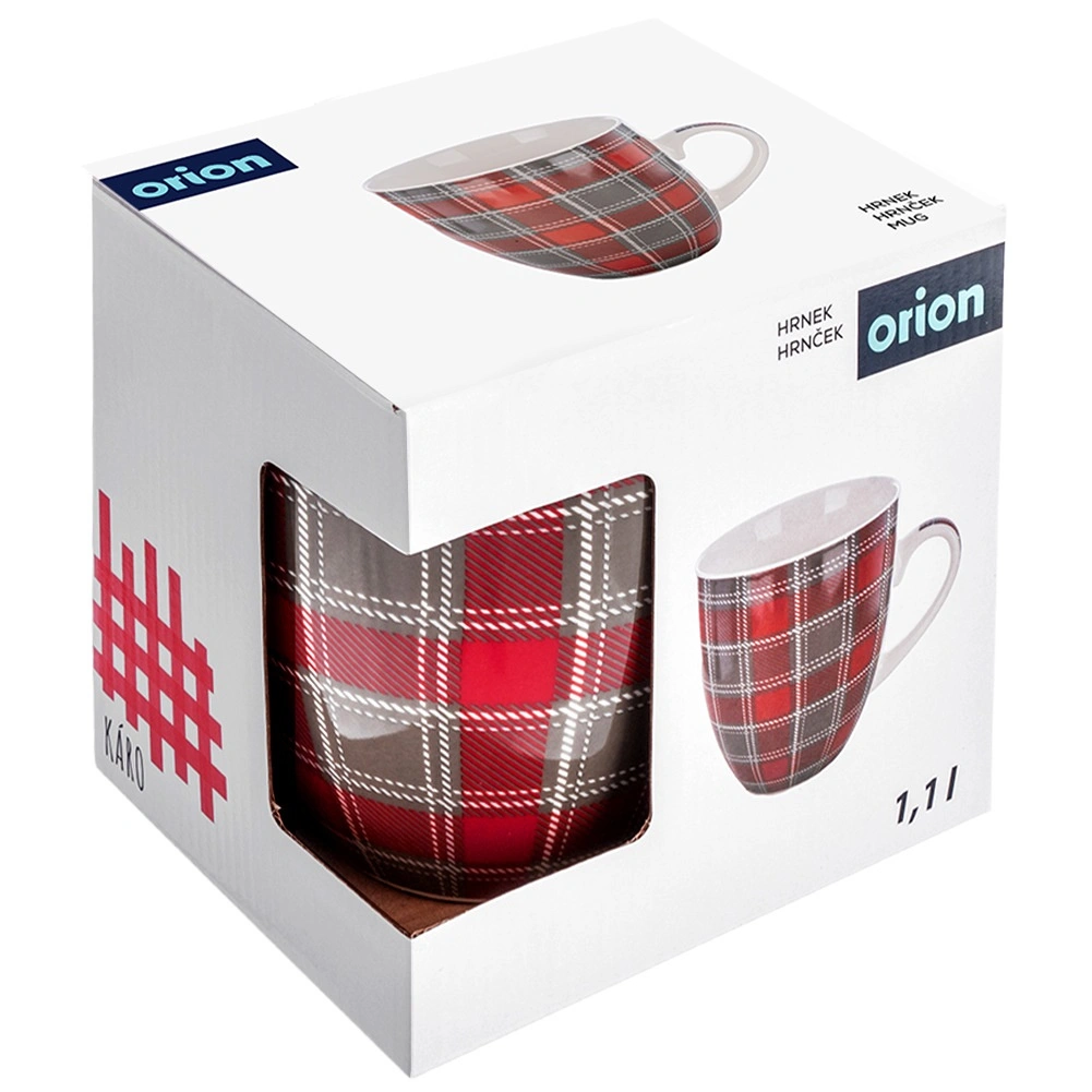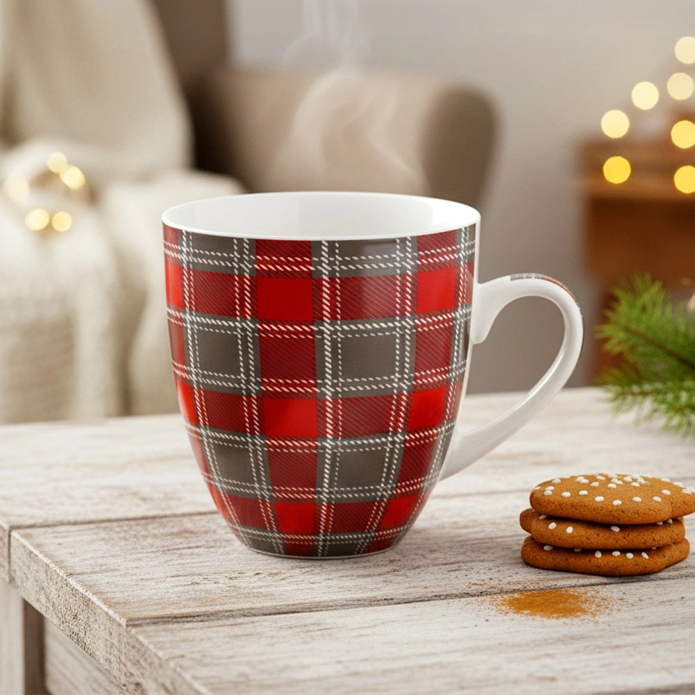 Uživajte v priljubljenih toplih napitkih v velikodušnem odmerku. Ta XXL porcelanasta skodelica 1 l združuje praktičnost z dekorativnim videzom – rdeče‑siv karirast motiv poživi vsako mizo in ustvari prijetno vzdušje v notranjosti.
