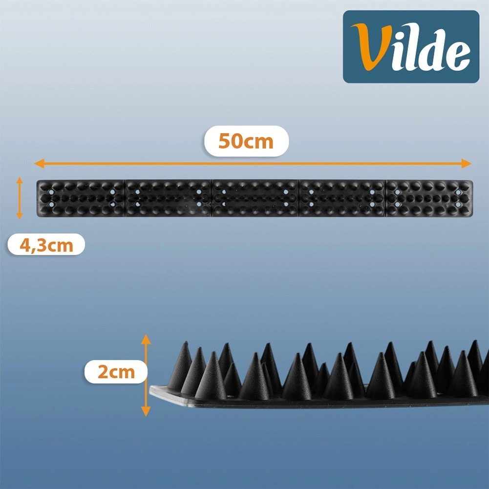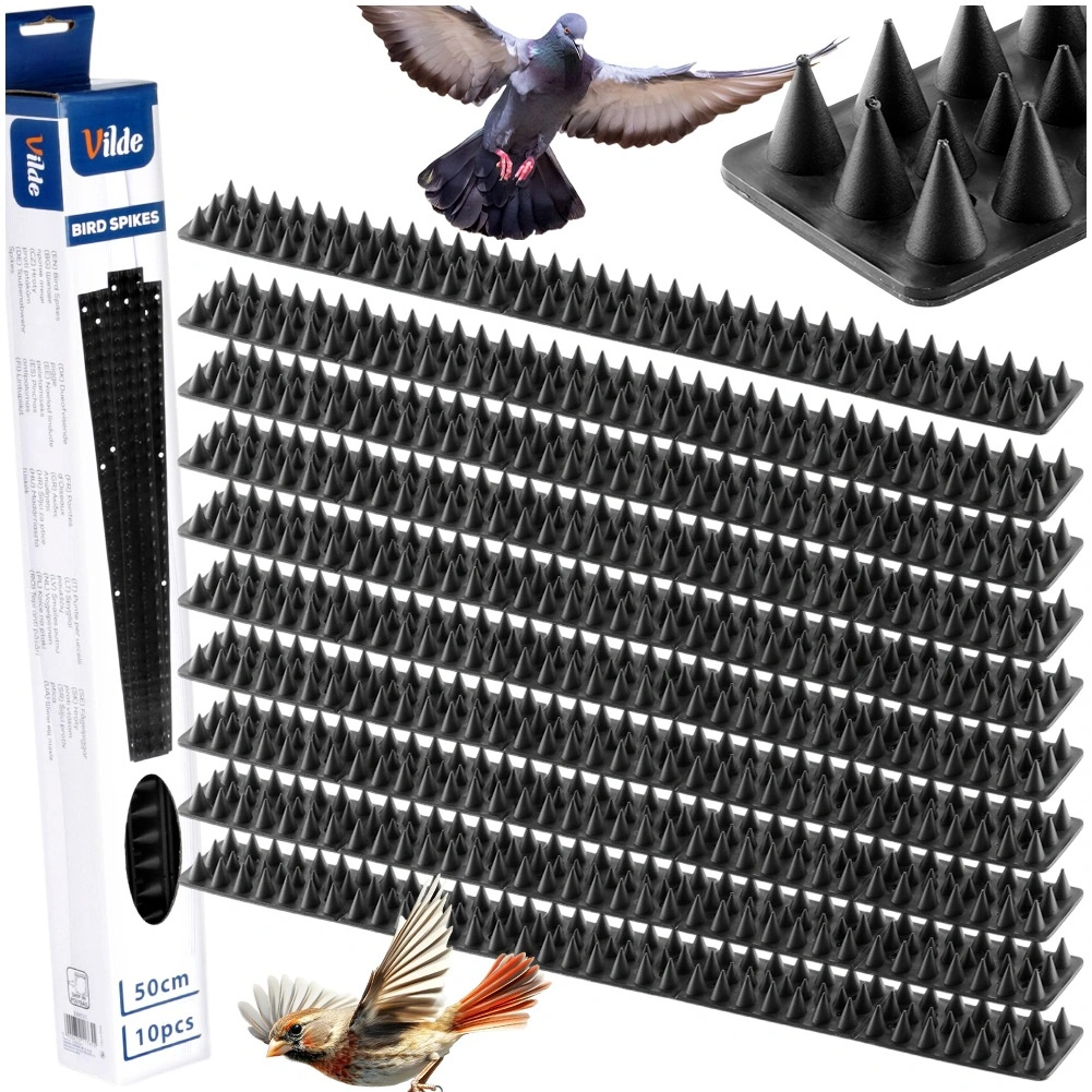Ohranite okolico oken, balkonov in ograj čisto in brez neželenih obiskovalcev. Ta set 10 letvic z gostimi bodicami iz odpornega črnega plastika zagotavlja zanesljivo preprečevanje pristajanja ptic in prehodov mačk. Modularna zasnova omogoča natančno prilagoditev dolžine in oblike zaščitenega roba.