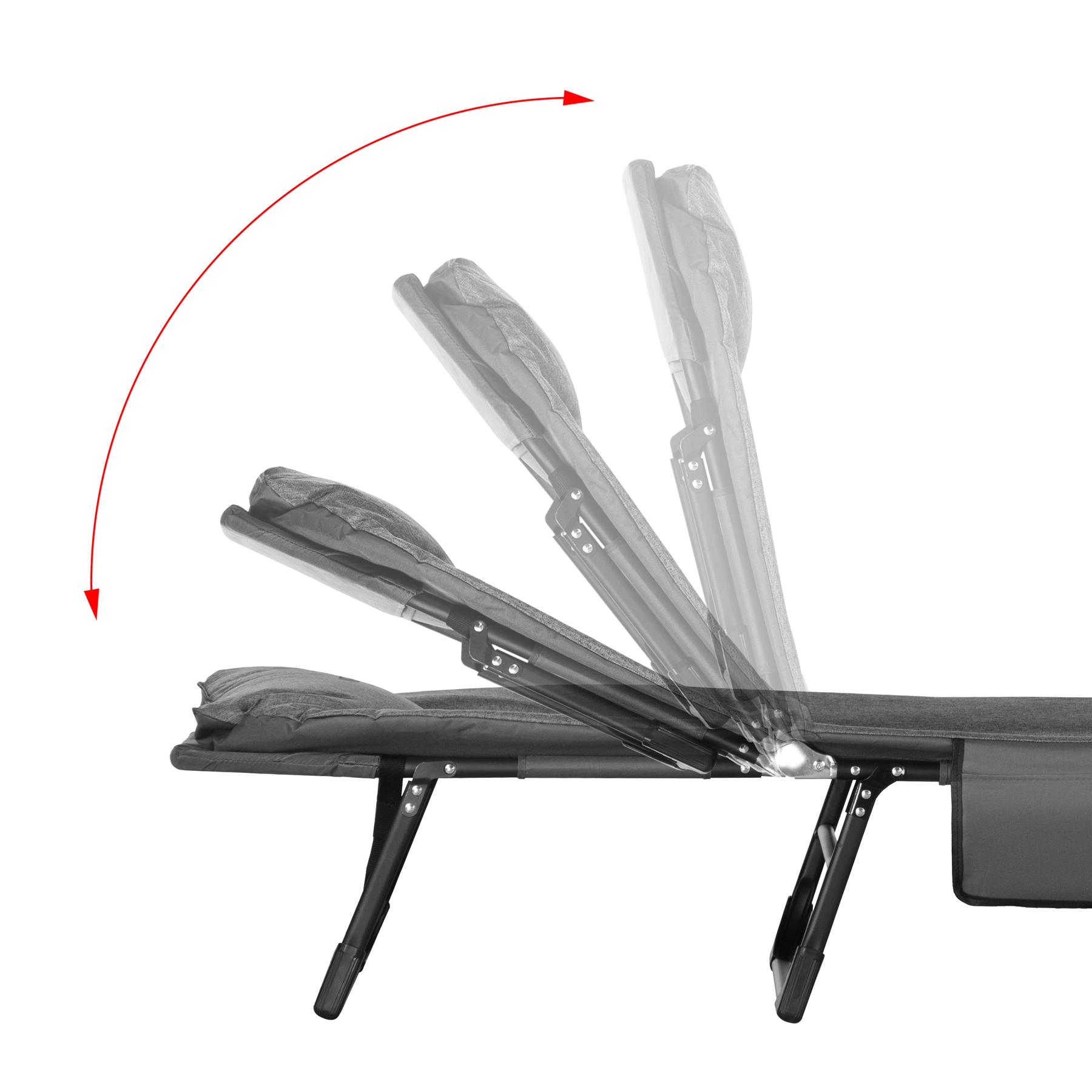Z merami 200 × 60 × 44 cm nudi udoben prostor za počitek, po zlaganju na 81 × 61 × 15 cm pa se zlahka prilega v avto ali omaro. Stranski žep poskrbi, da imate telefon, svetilko ali knjigo pri roki. Idealna za kampiranje, vikendico in kot rezervno ležišče za goste.