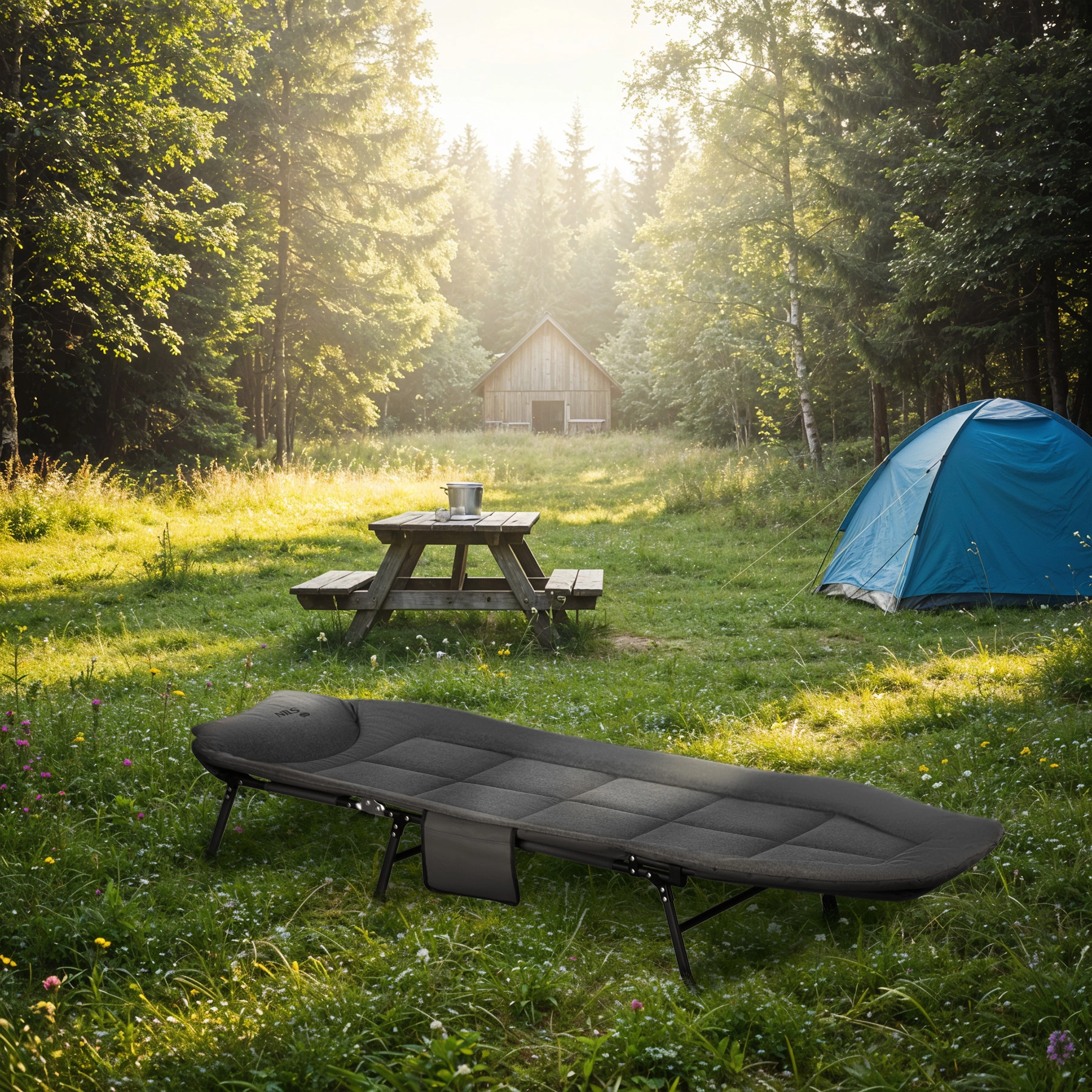 Močan jeklen okvir z nosilnostjo 120 kg in oblazinjeno površje iz Oxford 600D 4D zagotavljata oporo in udobje pri kampiranju in doma.