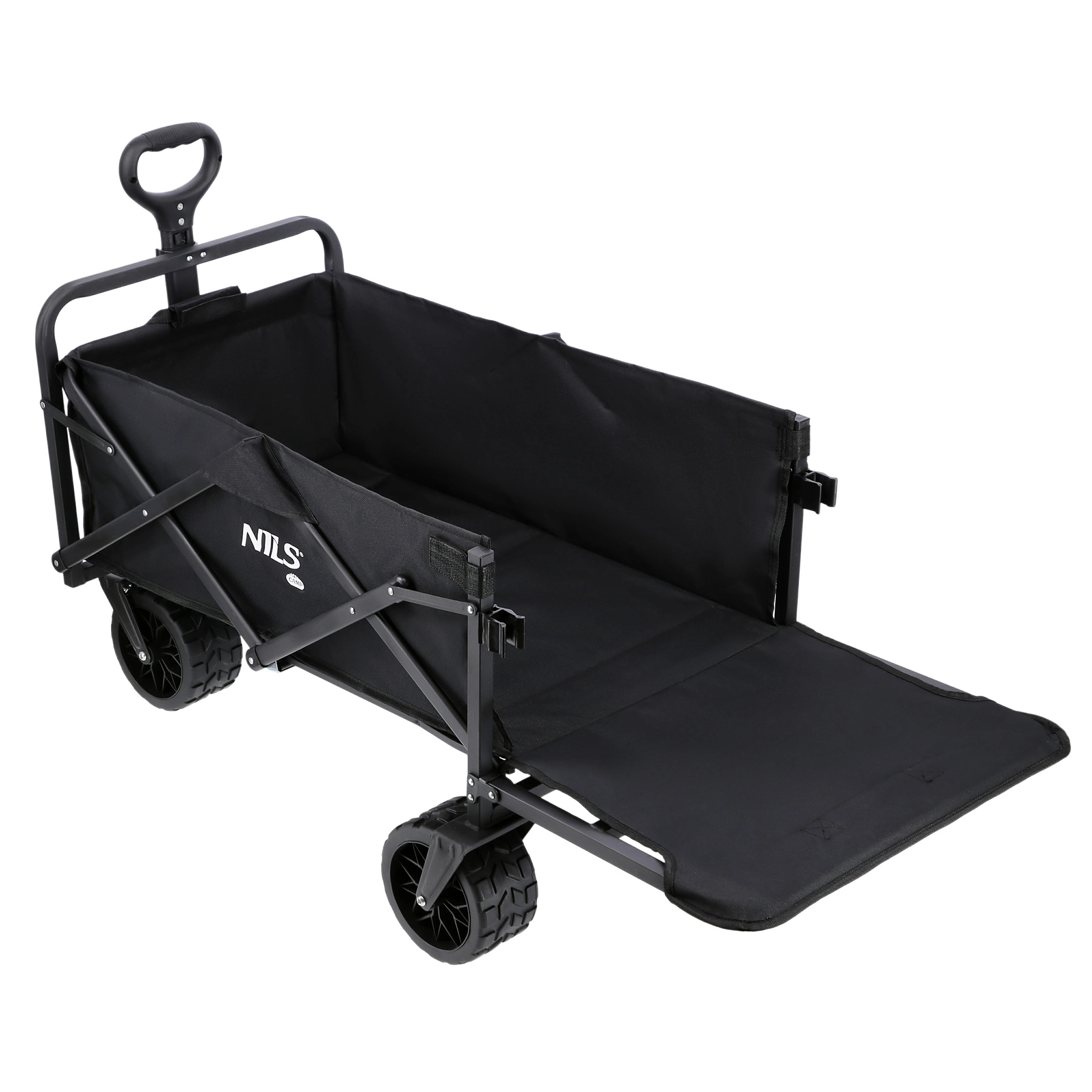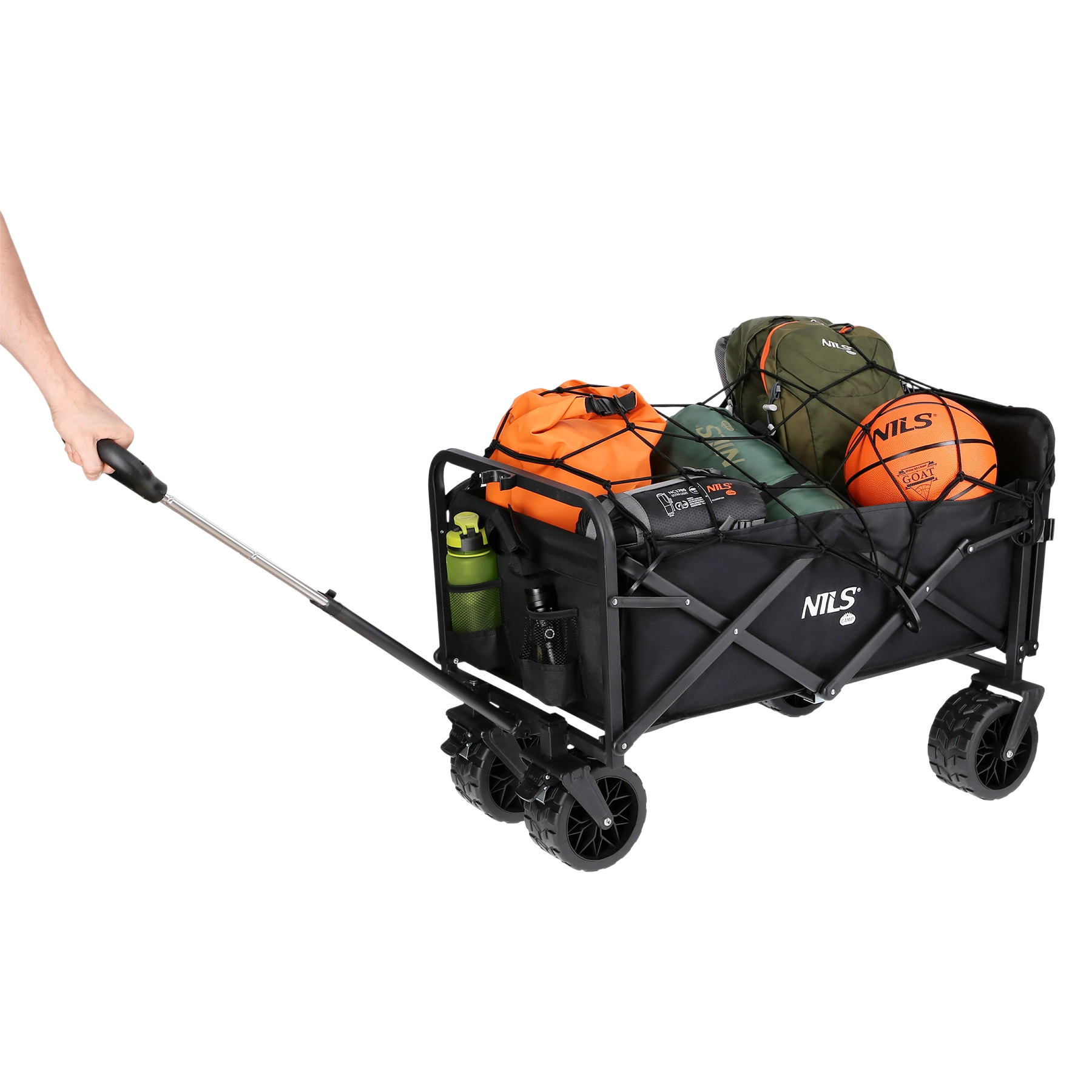 Praktičen zložljiv voziček NILS Camp NC1608 je idealen pomočnik za plažo, kampiranje in festivale. Ponuja prostornino 160 l, nosilnost do 100 kg, teleskopski ročaj za enostavno manevriranje ter široka 7" kolesa za gladko vožnjo tudi po pesku. Odpiralna zadnja stranica, žepi za pijačo in notranji žep poskrbijo za popolno organizacijo. Zahvaljujoč hitrinemu zlaganju, aretaciji in priloženi torbi se preprosto prevaža in shranjuje.