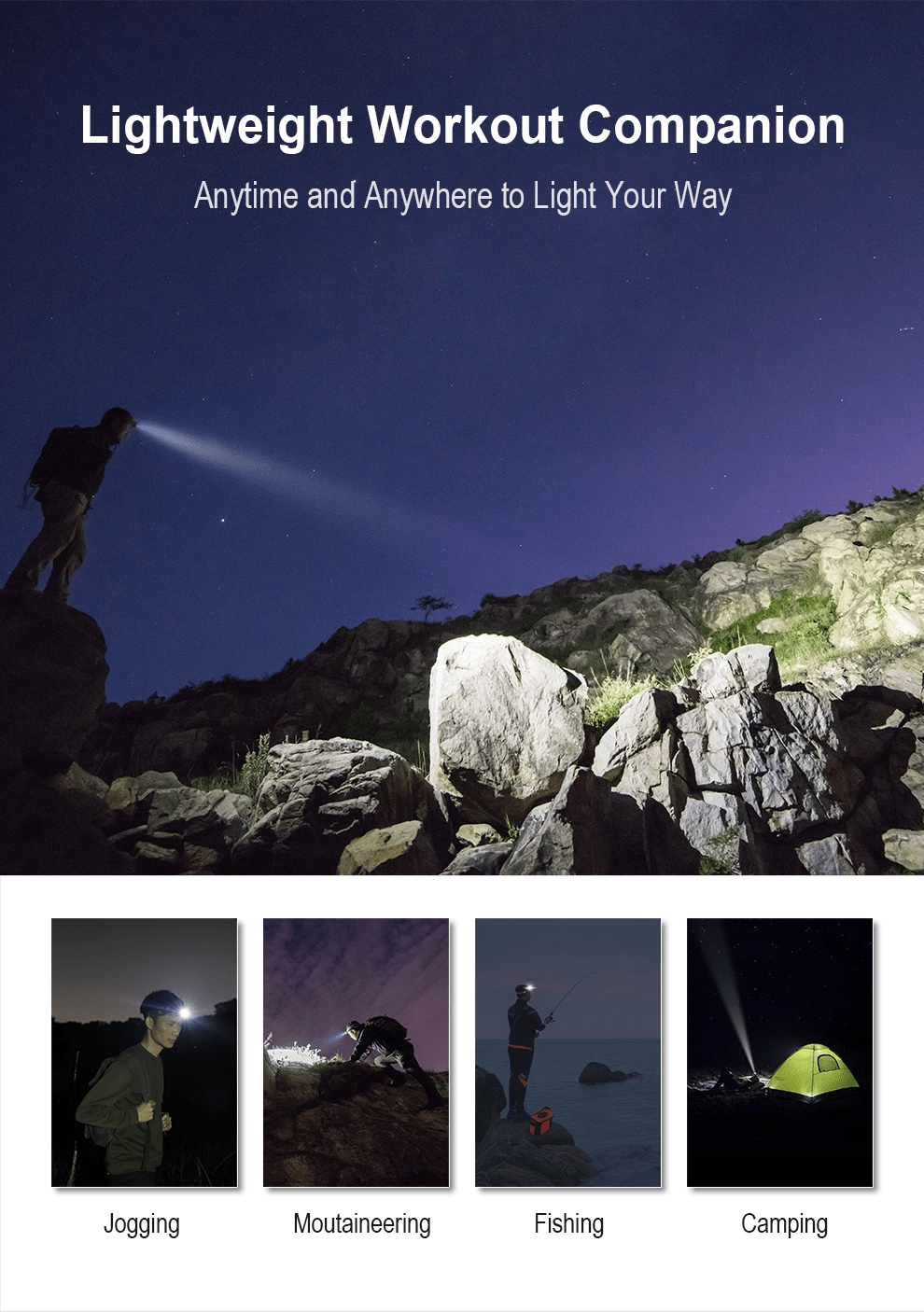 Senzor gibanja omogoča udobno upravljanje z enostavnim zamahom roke v katerem koli načinu, z dosegom približno 15 m. Preklapljanje 5 načinov svetljenja poteka z glavnim gumbom, senzor vklopite/izklopite z ločenim gumbom. Zaradi udobnega naglavnega paščka in priložene opreme je svetilka pripravljena za takojšnjo uporabo.