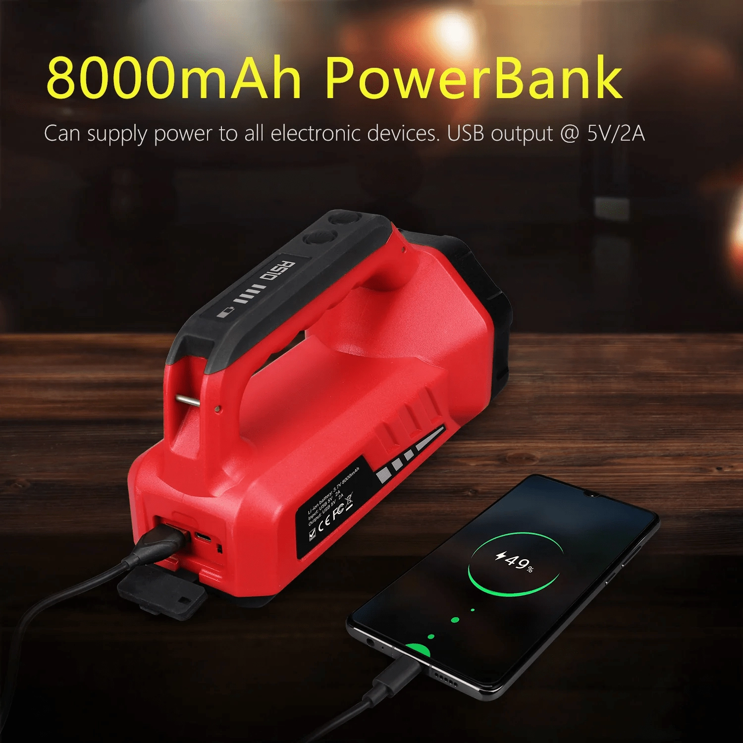 Svetilka z vgrajeno baterijo 8000 mAh, polnilni kabel USB‑C