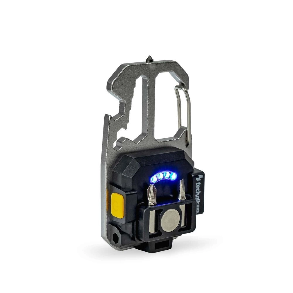 Močan magnet, okvir za karabin in vgrajeni nastavki (ravni in križni) za hitro zategovanje ali popuščanje majhnih vijakov.