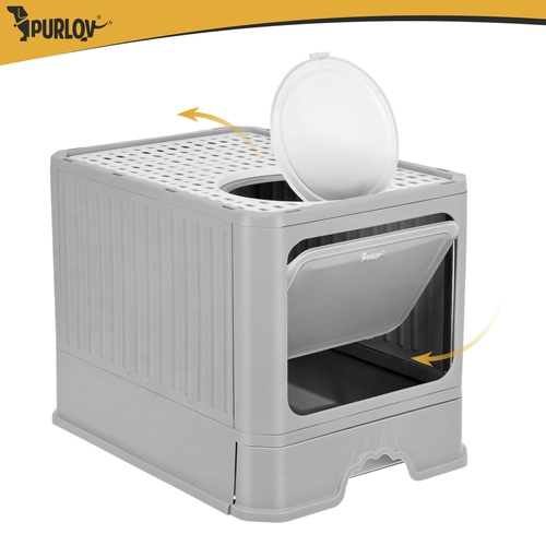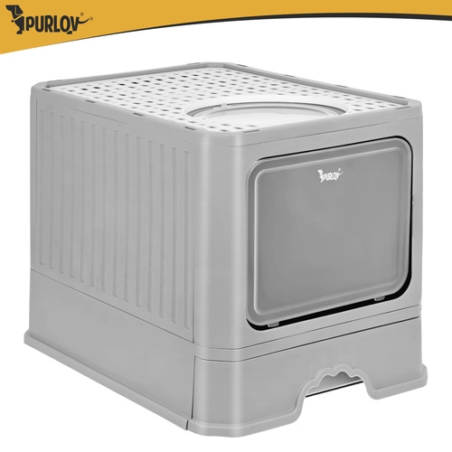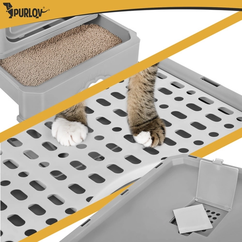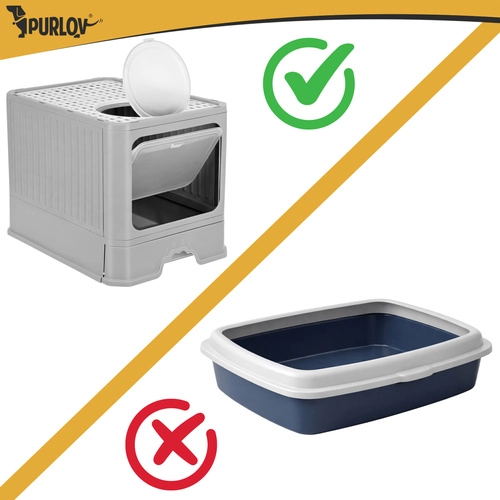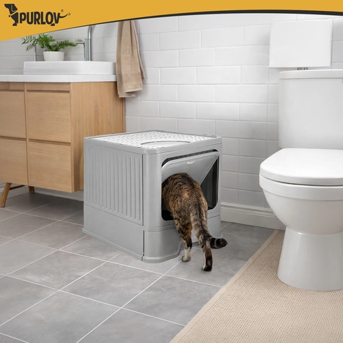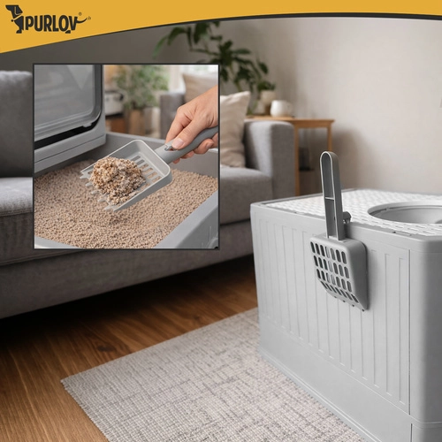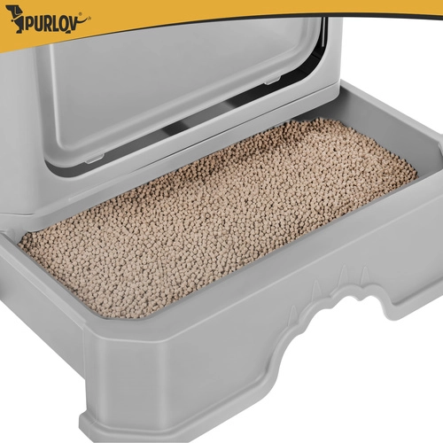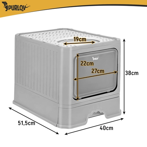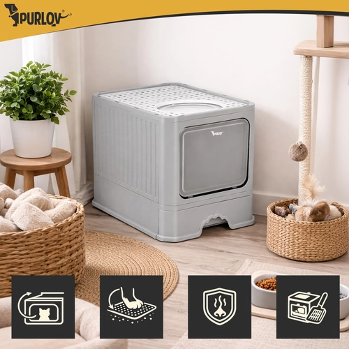 Stranišče Purlov združuje praktičnost in udobje – zaprta oblika omejuje uhajanje vonjav ter zmanjšuje raznašanje posipa po stanovanju. Vhodna vratca vodijo navznoter, medtem ko zgornji izhod s perforiranim pokrovom zadržuje granulice na tačkah. Zahvaljujoč izvlečnemu predalu očistite stranišče v trenutku, brez dvigovanja zgornjega dela.