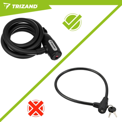 Zanesljivo zaščitite kolo, skiro ali voziček z ključavnico TRIZAND dolžine 150 cm in premera 12 mm. Odporna jeklena vrv z PVC prevleko preprečuje praske na okvirju, ključavnica na ključ zagotavlja hitro in zanesljivo zaklepanje, spiralna zasnova pa olajša prenašanje. Priložena sta nosilec za okvir in 2 ključa.