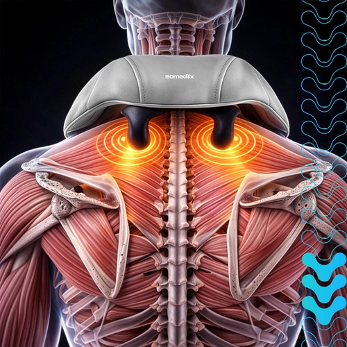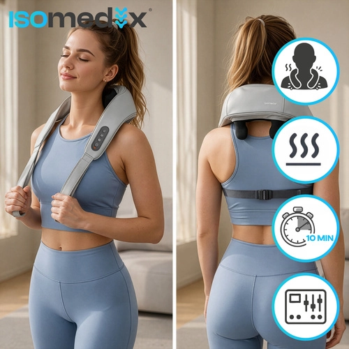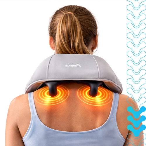 Olajšajte napetost v vratu, ramenih in hrbtu kadar koli in kjer koli z brezžičnim masažnim aparatom ISOMEDIX. Združuje globinsko shiatsu gnetilno masažo, gretje in udobno upravljanje za hitro regeneracijo in sprostitev. Zahvaljujoč bateriji z delovanjem do 120 minut in polnjenju prek USB‑C je idealen za dom, pisarno in potovanja.