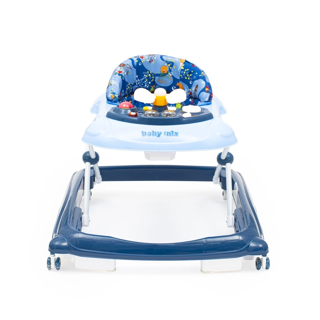 Hodulja BABY MIX je zasnovana tako, da je za dojenčka udobna, varna in hkrati zabavna. Ergonomsko oblikovan sedež podpira pravilno držo hrbta, prevleka pa je enostavno snemljiva in pralna. Multimedijska plošča s svetlobnimi učinki, 12 melodijami in vrtljivim volanom z hupo bo malega raziskovalca dolgo držala v akciji.