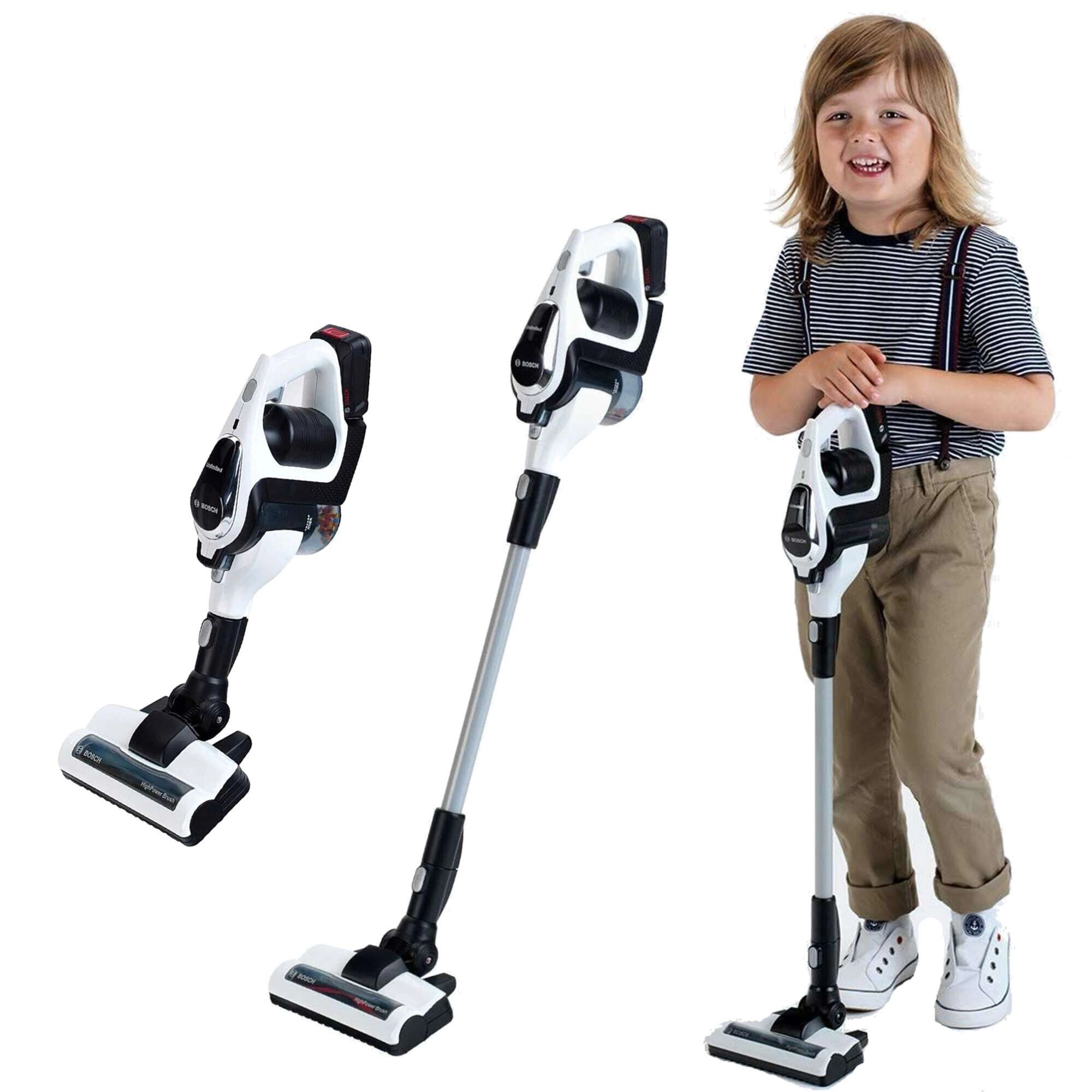 Otroški pokončni sesalnik BOSCH Unlimited znamke Klein je realistična igrača za male pomočnike v gospodinjstvu. Ponuja LED-svetlobo, vrtinčaste kroglice v zbiralniku, dva zamenljiva nastavka in možnost enostavne pretvorbe v ročni sesalnik. Lahka in varna zasnova je idealna za otroke od 3 let naprej ter spodbuja posnemanje odraslih in razvoj motorike.