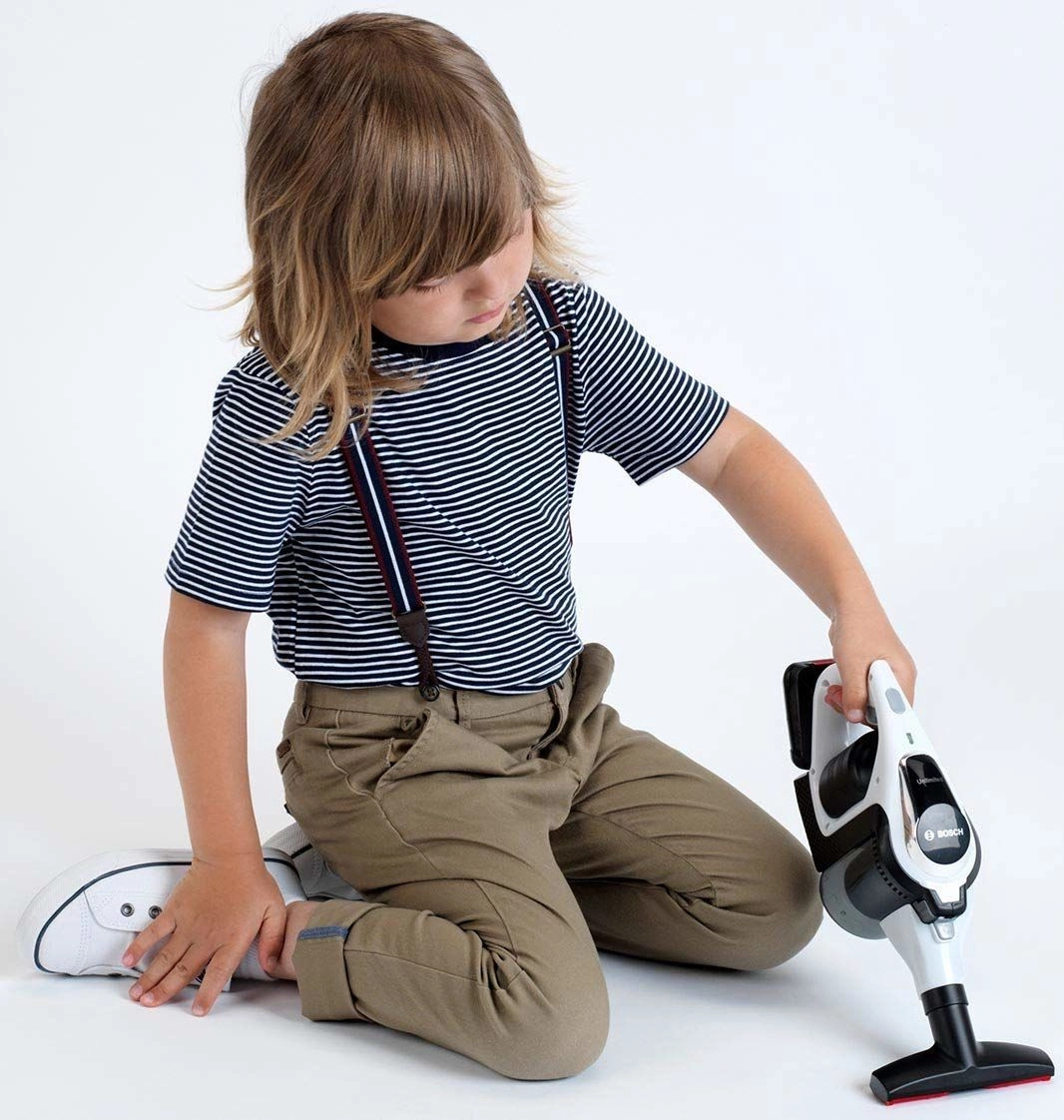 Licencirana zasnova BOSCH s funkcionalno LED-osvetlitvijo ustvarja vtis pravega sesanja in motivira otroke k igri ter posnemanju.
