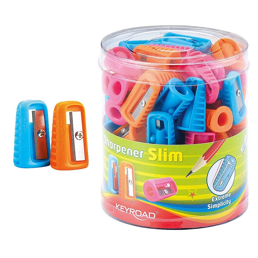 Kompaktno plastično ostrilo KEYROAD Slim je idealno za peresnico in potovalno torbo. Ponuja ozko zasnovo, ostrenje ene svinčnike, nedrseč oprijem za udobno držanje in prihaja v mešanici treh barv.