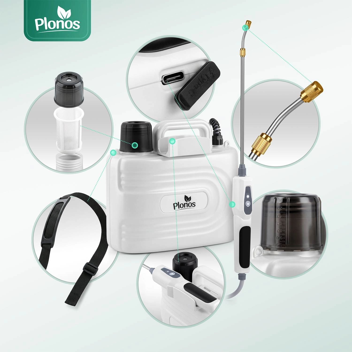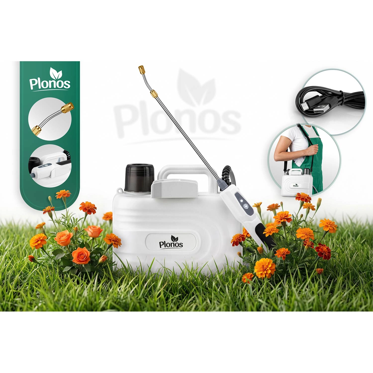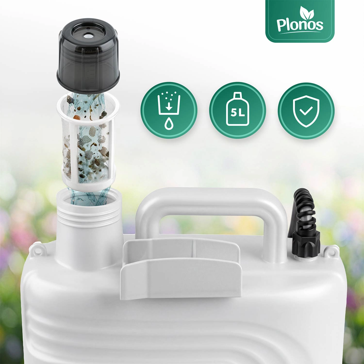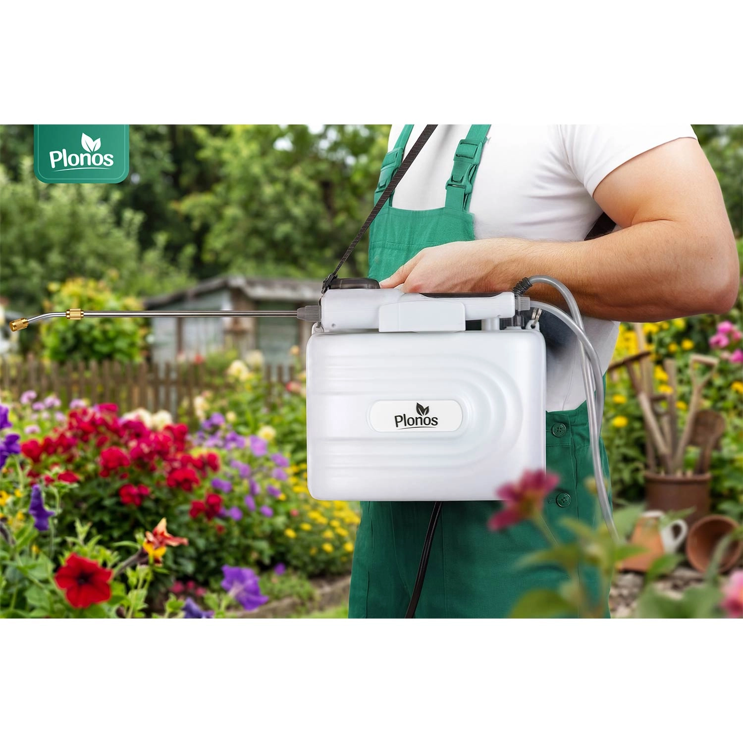Zmogljiv akumulatorski razpršilnik PLONOS s prostornino 5 l zagotavlja hitro in enakomerno nego rastlin brez ročnega črpanja. Zahvaljujoč nastavljivi medeninasti šobi, stalnemu tlaku in udobnim ramenskim naramnicam je delo na vrtu učinkovito in udobno. Od fine megle do močnega curka – natančno tako, kot trenutno potrebujete. Trpežen PE rezervoar, 12 V akumulator z indikatorjem napolnjenosti in filtrirno sito za zaščito pred mašenjem zagotavljajo dolgo življenjsko dobo in zanesljivo delovanje.