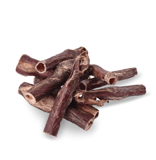 Naravni priboljšek za pse iz 100 % sušenega govejega požiralnika brez konzervansov, barvil in sladkorja. Spodbuja žvečenje, čisti zobe in masira dlesni, pomaga preprečevati nastanek zobnega kamna ter prispeva k pravilnemu prebavljanju.