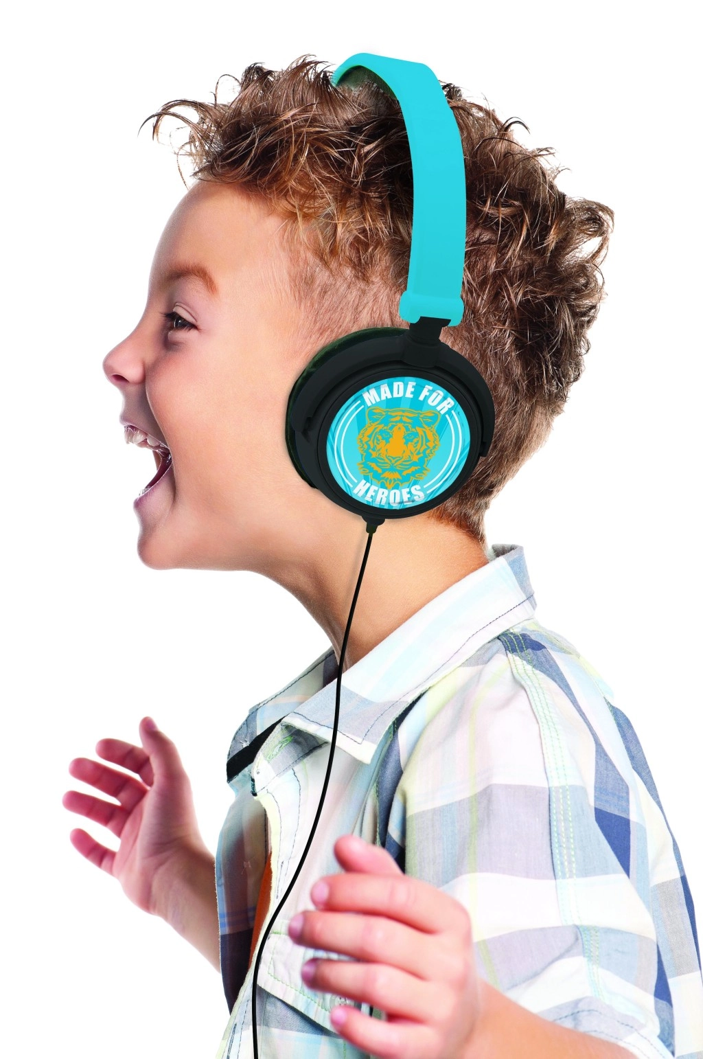 Otrokom privoščite varen in udoben poslušalni užitek z žičnimi slušalkami Lexibook Made for Heroes. Kombinacija izrazite turkizne barve, črnih ušesnih blazinic ter tigrovega motiva z napisom »MADE FOR HEROES« ustvari privlačen videz, ki otroke navduši. Zaradi zložljive zasnove se slušalke zlahka spravijo v nahrbtnik in so idealne za šolo, potovanja in dom.