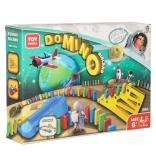 Vsebina paketa: 126× domine (4 barve), 2× letalo z izstreljevalnikom, deli prog, 2× kroglica, 1× figurica, 12× podstavek za domine, 52× izobraževalne nalepke (črke, številke, matematični znaki).