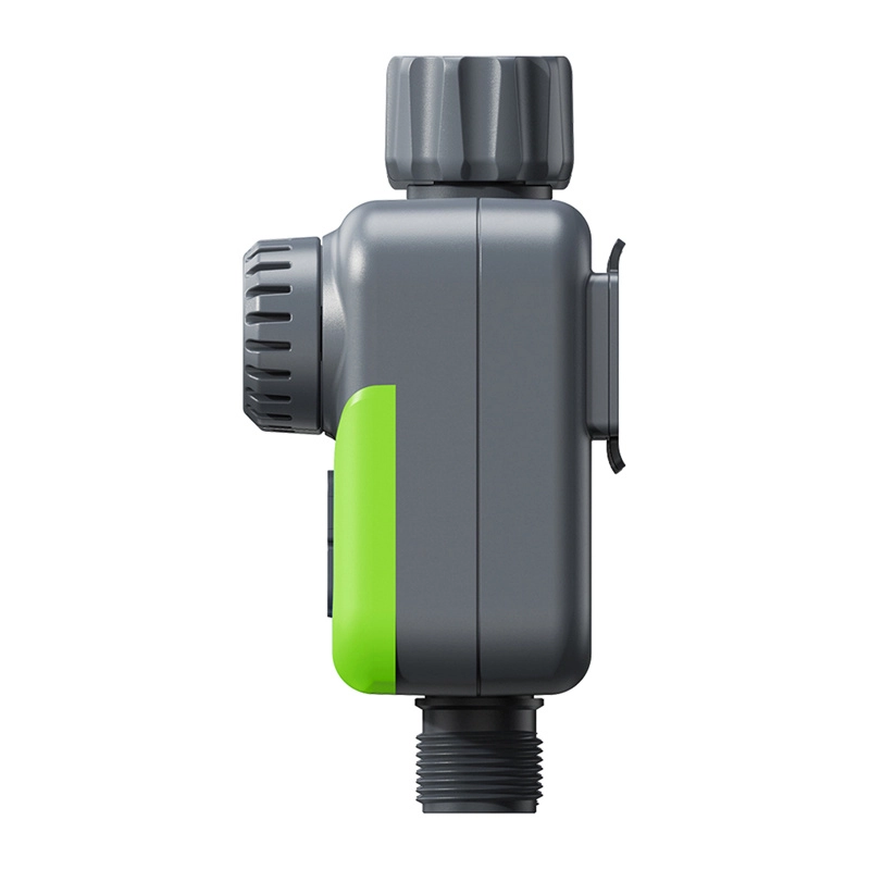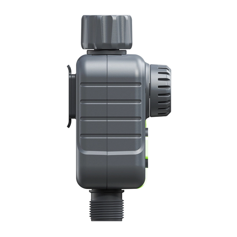 Upravljanje je intuitivno zahvaljujoč velikemu 2,5" LCD-zaslonu, vrtljivemu izbirniku in funkcijskim gumbom. Namestitev ne zahteva orodja – dovolj je priklop na pipo in cev. Praktični ročni način zažene zalivanje kadarkoli brez spremembe shranjenega programa. Funkcija odložitve ob dežju (24/48/72 h) pomaga varčevati z vodo v obdobjih padavin, na voljo sta tudi opozorilo za nizko napolnjenost baterij in samodejno zapiranje ventila.