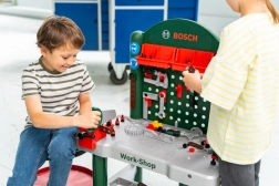 Delavnica je zasnovana tako, da podpira ustvarjalnost in samostojnost – vse ima svoje mesto in orodja so vedno pri roki. Zaradi kakovostne izdelave in trpežnih plastik brez ostrih robov je igra varna in udobna.