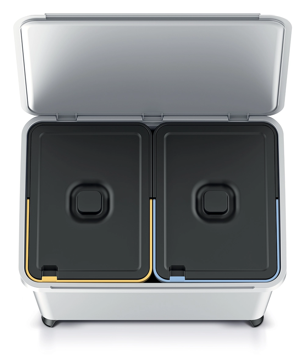 Eleganten in funkcionalen koš za ločevanje Systema prinaša pametno rešitev za vsakodnevno recikliranje. Dva ločena predelka omogočata hitro razvrščanje odpadkov, barvni elementi na pokrovih pa olajšajo orientacijo vsem članom družine. Pepelnato siva izvedba se odlično poda sodobnim interierjem, zaradi kompaktnih mer pa se koš zlahka prilega pod kuhinjski pult ali v utility prostor.