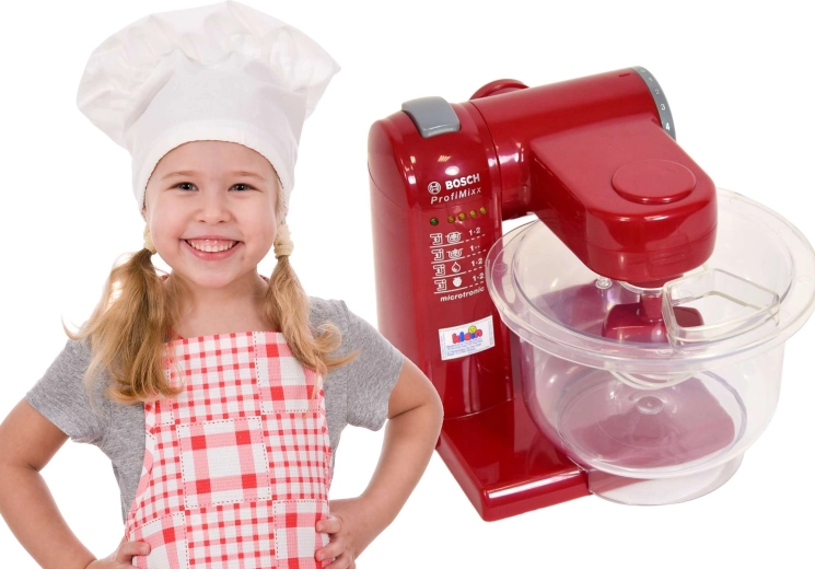 Realistični otroški kuhinjski robot z licenco BOSCH bo navdušil male kuharske mojstre. Ponuja odstranljivo prozorno posodo, nagibno roko, 2 stopnji hitrosti ter učinke svetlobe in zvoka. Kompaktna velikost je idealna za otroške roke, varna plastična izvedba pa spodbuja ustvarjalno igro peke in kuhanja.