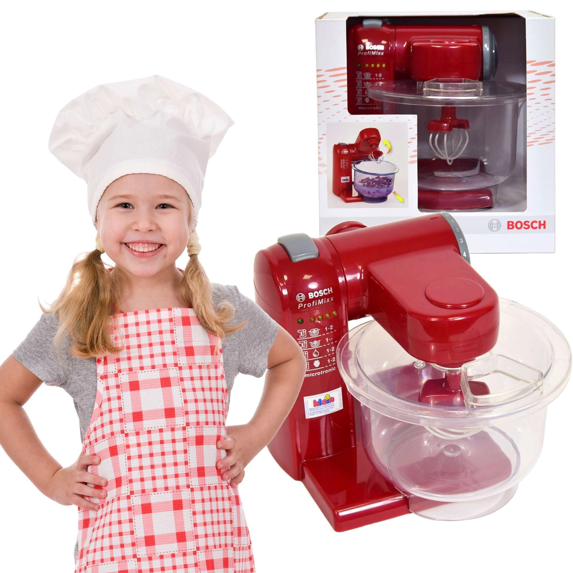 Ta stilski bordo kuhinjski robot za otroke zvesto posnema originalni aparat BOSCH. Zahvaljujoč svetlobnim in zvočnim učinkom deluje kot pravi aparat ter motivira otroke k posnemanju odraslih pri kuhanju. Lahka zasnova in varni materiali zagotavljajo udobno in brezskrbno uporabo.