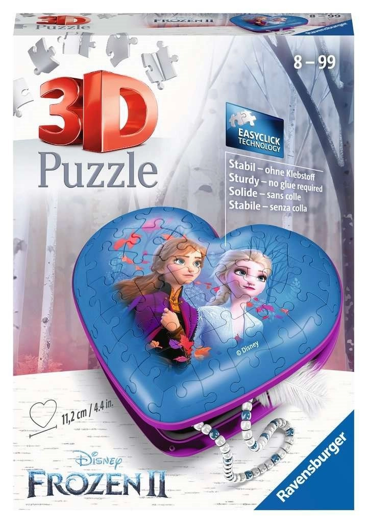 Sestavite 3D srce z motivom Disneyjevega Ledenega kraljestva 2 iz plastičnih koščkov s tehnologijo EasyClick. Srce lahko služi kot škatlica za nakit in različne drobnarije.