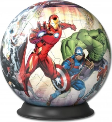 3D Puzzleball znamke Ravensburger prinaša kakovostno izdelavo in zabavo za male in velike ljubitelje superjunakov. Zahvaljujoč natančno ukrivljenim koščkom je sestavljanje enostavno, stabilno in brez lepila. Končana krogla z motivom Marvel Avengers bo privlačen dodatek vsake sobe.