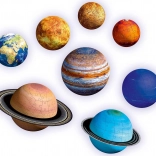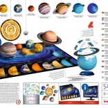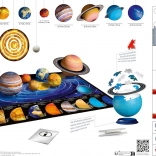 Odkrijte lepoto našega Sončnega sistema v interaktivni obliki. Set vsebuje 8 3D puzzle krogel planetov različnih premerov, dva planetarna obroča, Sonce iz trde lepenke in Luno iz penastega polistirena. Vsak košček je natančno oblikovan in po sestavi tvori stabilne in gladke krogle brez potrebe po lepilu.
