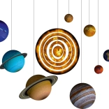 Sestavite 8 planetov v različnih velikostih in barvah, dopolnite jih z obroči, Luno ter jih postavite na stojala ali obesite.