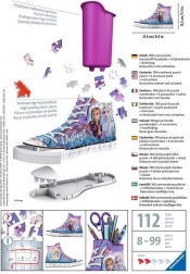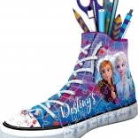 Genialna kombinacija zabave in praktičnosti: 3D puzzle v obliki visoke superge s priljubljenima junakinjama iz filma Ledeno kraljestvo 2. Zahvaljujoč trdnim plastičnim koščkom boste sestavili obstojno dekoracijo, ki služi kot lonček za peresa, barvice in škarje – brez lepila, enostavno in z odličnim rezultatom.