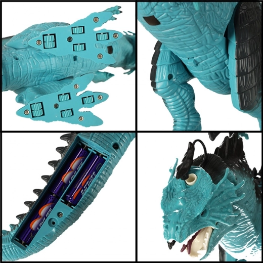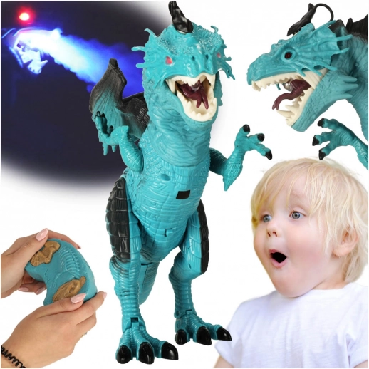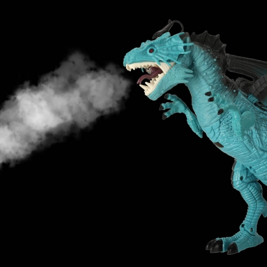 Dinozaver sprošča paro, ki imitira ognjeni dih, kar še poveča privlačnost in magičnost igre.