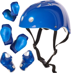 Popoln otroški komplet za varno vožnjo na rolerjih, skiroju, skateboardu in kolesu. Lahka čelada z prezračevalnimi odprtinami, nastavljivimi trakovi pod brado in blažilnim EPS polnilom dopolnjuje ščitnike za kolena, komolce in dlani za največjo zaščito pri padcih.