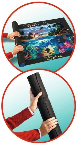 Valjasta podloga RAVENSBURGER je pametna rešitev za ljubitelje sestavljank, ki želijo imeti svojo razporejeno sliko vedno na varnem. Tekstilna, nedrseča površina in trden plastičen valj držita posamezne koščke na mestu, ne da bi se pomešali. Zaradi dimenzije 110 × 66 cm zanesljivo sprejme sestavljanke večine znamk do 1500 kosov.