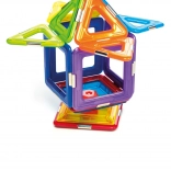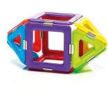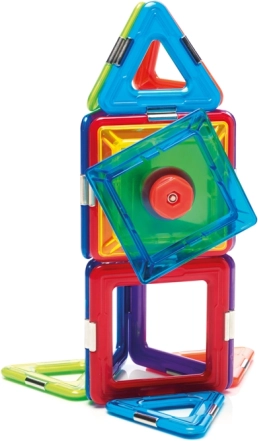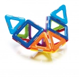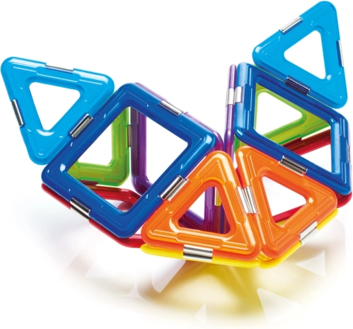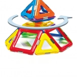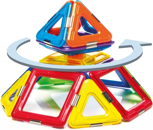 Komplet vsebuje skupno 6 magnetnih kvadratov, 8 trikotnikov in 1 vrtavko, kar omogoča širok prostor za eksperimentiranje. Ta komplet je ne samo zabaven, ampak tudi izobraževalen in razvija otroške spretnosti, kot so prostorska predstava, koordinacija, koncentracija in kreativnost.