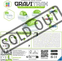 Razširite svojo kroglično progo s kompletom GraviTrax Tunelčki – Color Swap in spremenite vsako vožnjo v magično doživetje. Po vstopu v tunel kroglica takoj spremeni barvo. Tunelčke lahko uporabite na dva načina – z vnaprej vstavljeno kroglico ali kot samodejno menjavo barve neposredno med vožnjo. Idealen za kreativne graditelje in širitev možnosti vaše proge. Deluje samo z začetnim kompletom GraviTrax.
