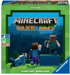 Ravensburger MINECRAFT: Builders & Biomes prenaša priljubljene igralne prvine iz videoigre na vašo mizo. Potujte po igralnem načrtu, kopljite les, kamen in druge surovine, gradite edinstvene konstrukcije ter zbirajte točke z pametno izbranimi strategijami. Vsak krog prinaša nove izbire in priložnosti, da prekašate nasprotnike.