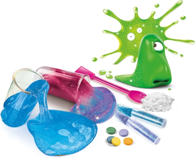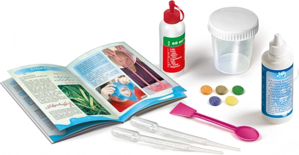 Vključeni so raznoliki materiali, ki popestrijo eksperimentiranje. Od čudovite bleščeče sluzi do zabavnih epruvet.